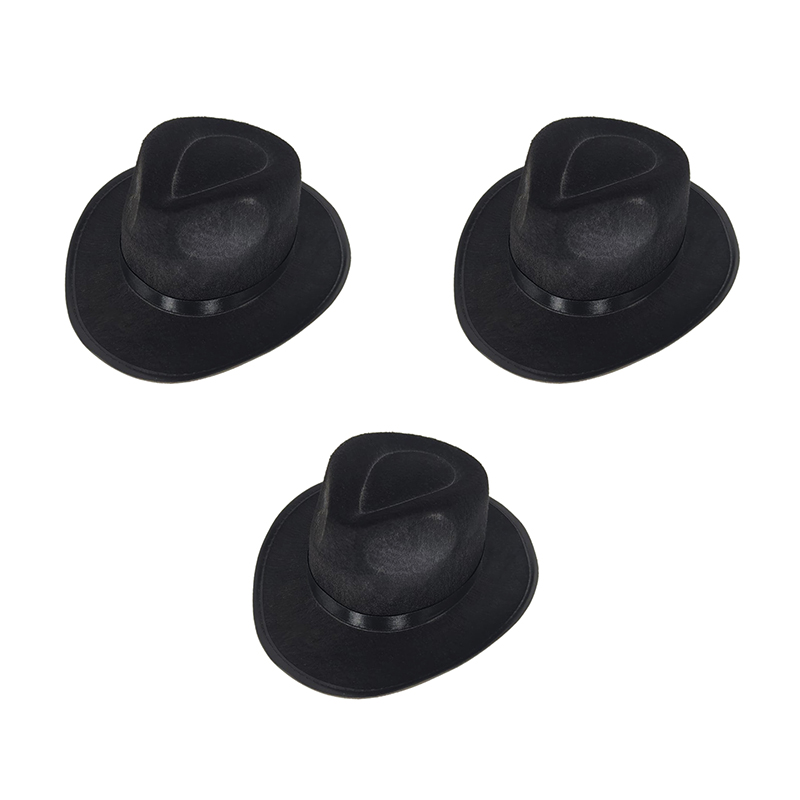 Гангстерская Шляпа фетр черная "Гангстер мафиози" 31*28*11см (Набор 3 шт.)