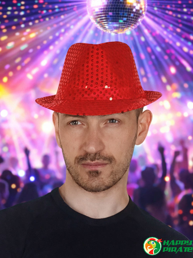 Карнавальная шляпа блестящая с пайетками "Диско", цвет красный