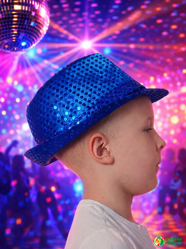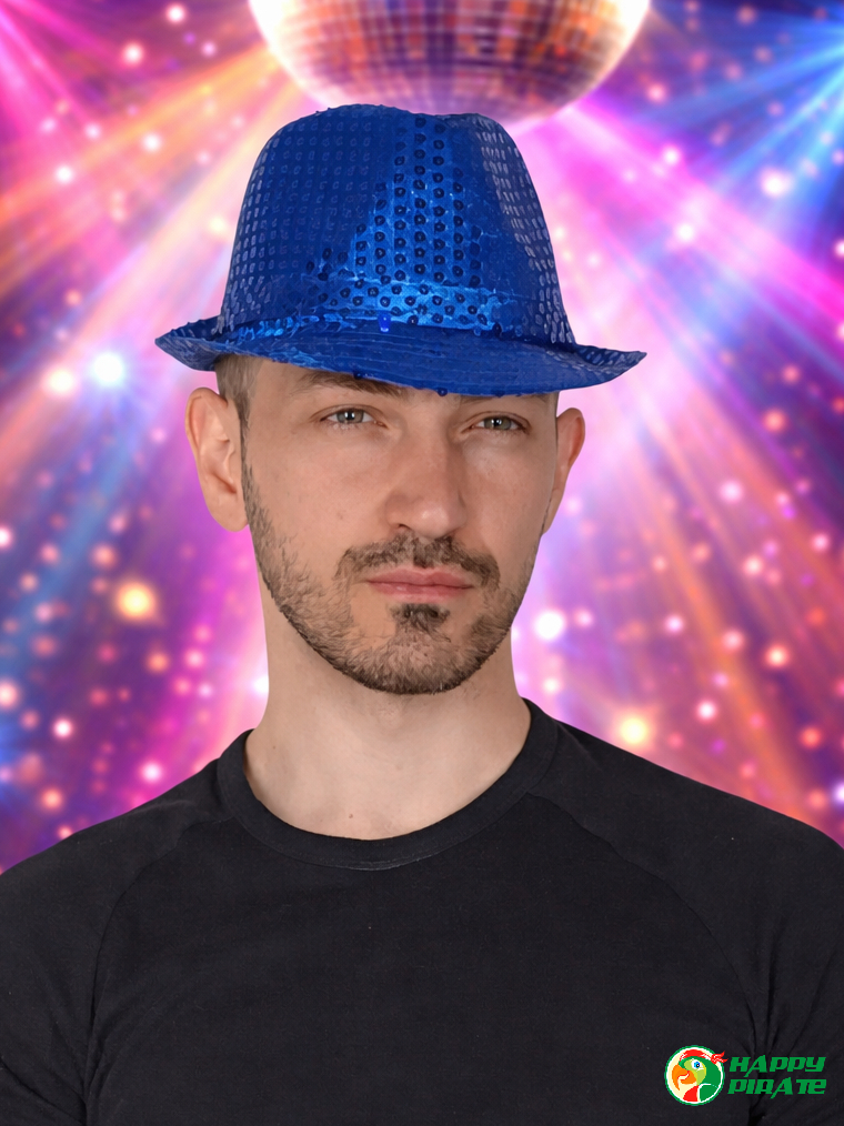 Карнавальная шляпа блестящая с пайетками "Диско", цвет синий