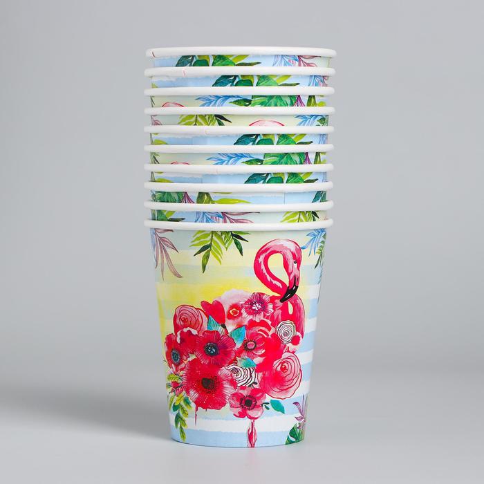 Стакан бумажный гавайский "Фламинго", 250 мл (набор 10 шт)