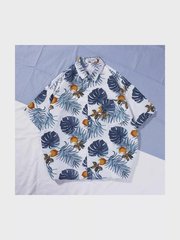 Гавайская рубашка белая летняя пальмы лимоны оверсайз размер M