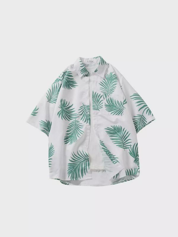Гавайская рубашка белая летняя листья пальмы оверсайз размер L