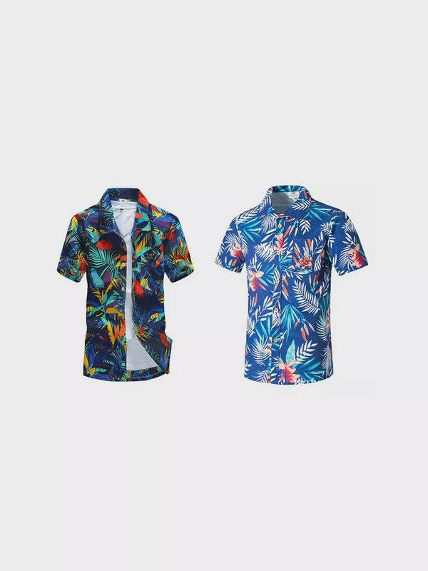 Комплект гавайских рубашек синие с цветами и пальмами размер L, 2 шт