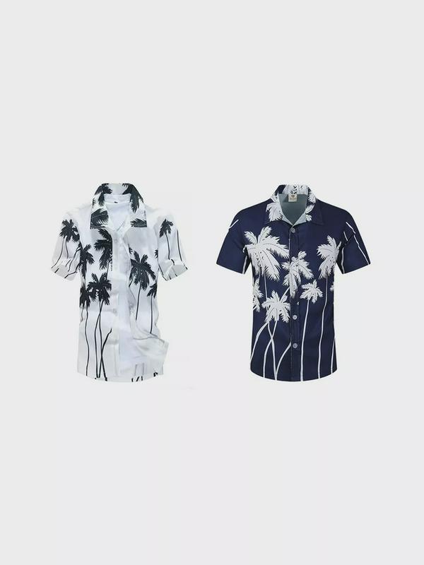 Комплект гавайских рубашек синяя и белая с пальмами, размер S (Набор 2 шт.)