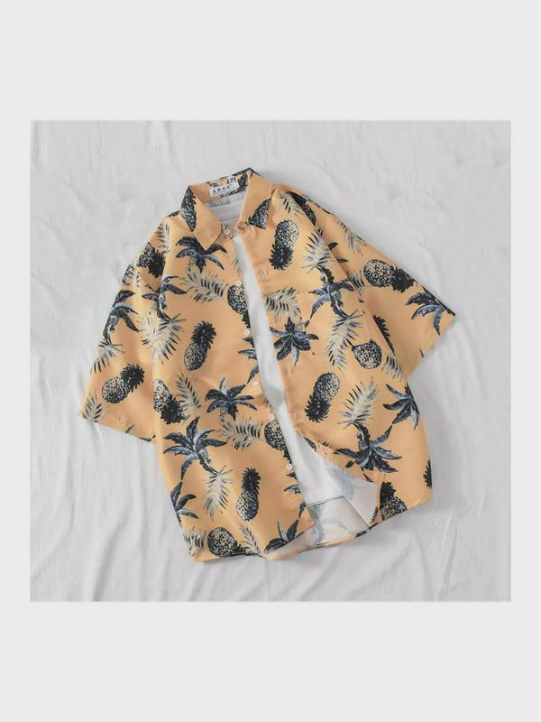 Гавайская рубашка желтая летняя ананасы оверсайз размер XL