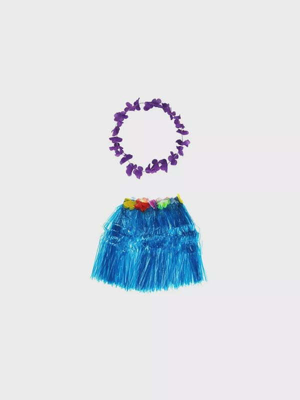 Гавайская юбка 40 см, цвет синий голубой, гавайское ожерелье "Цветочки", цвет фиолетовый