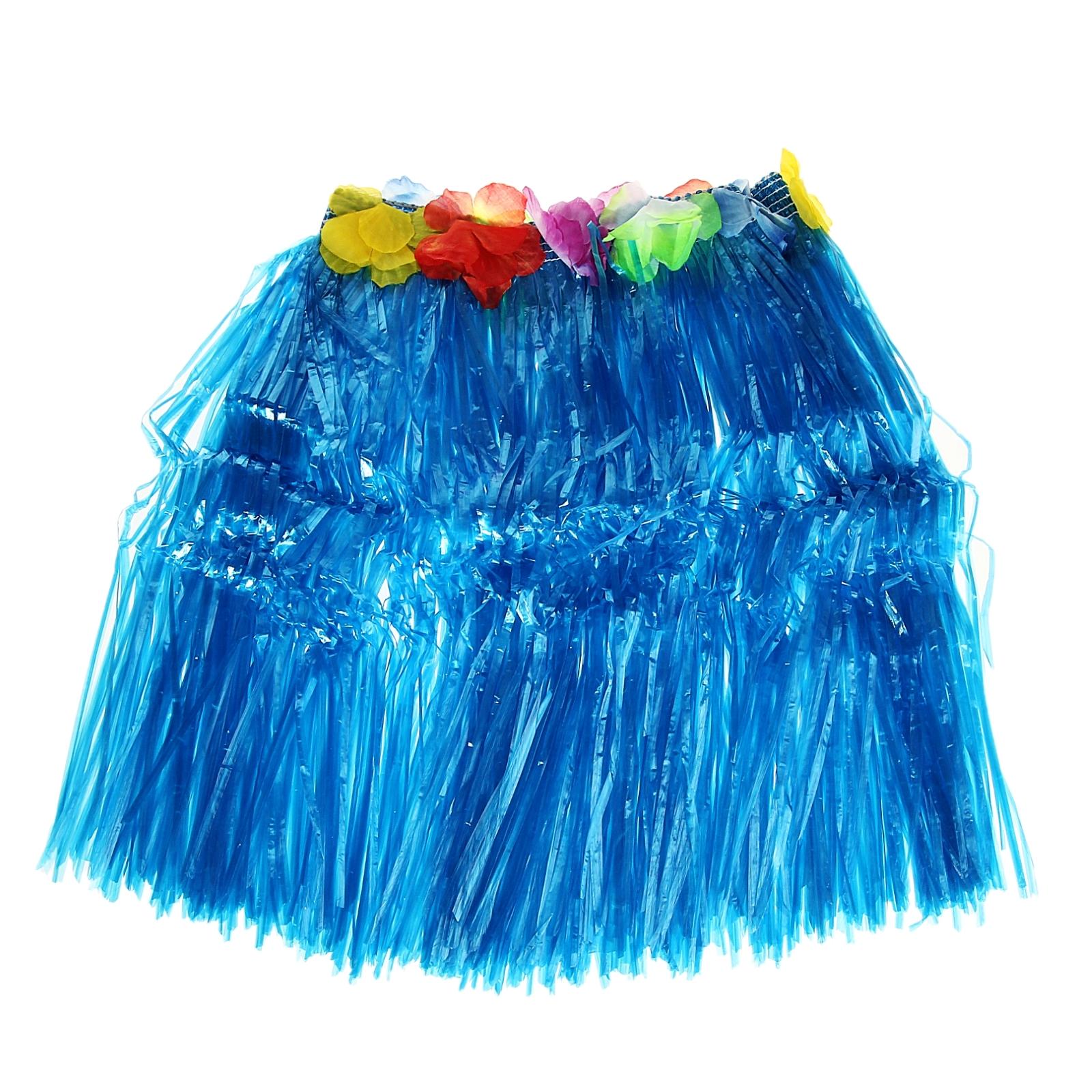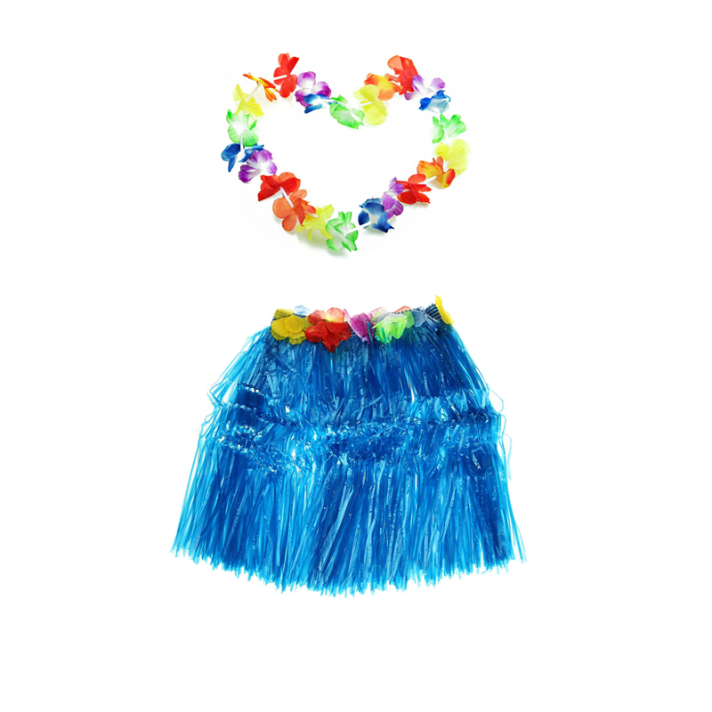 Гавайская юбка 40 см голубая, гавайское ожерелье 96 см