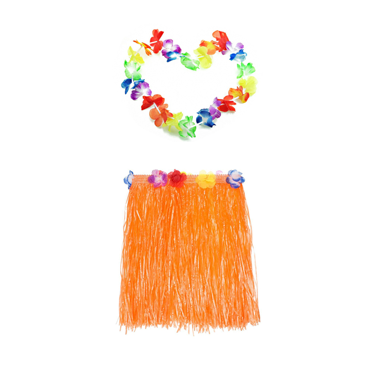 Гавайская юбка 40 см оранжевая, гавайское ожерелье 96 см
