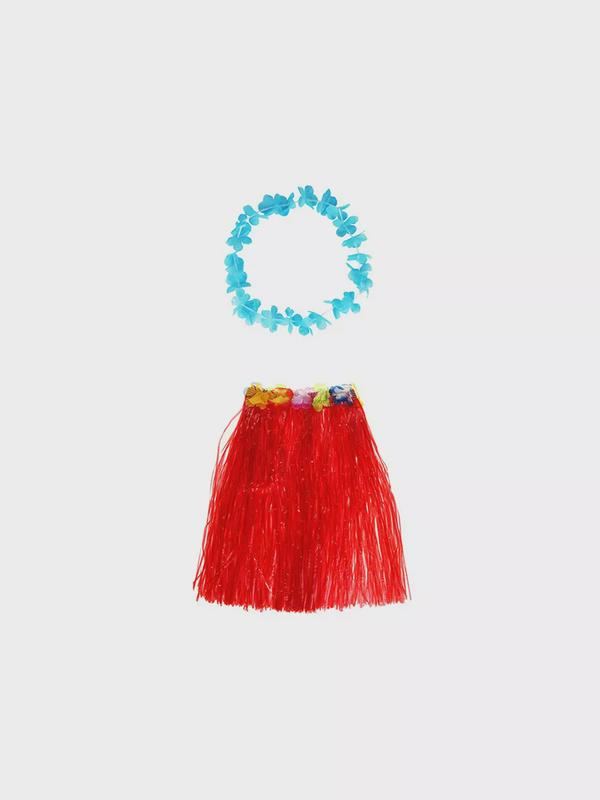 Гавайская юбка 60 см, цвет красный, гавайское ожерелье "Цветочки", цвет голубой