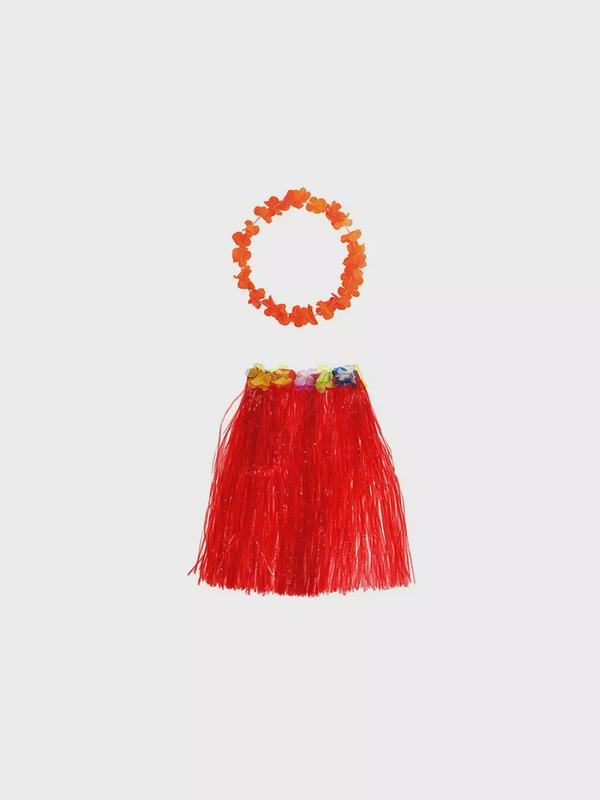Гавайская юбка 60 см, цвет красный, гавайское ожерелье "Цветочки", цвет оранжевый