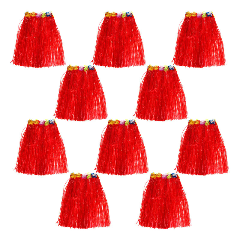 Гавайская юбка длинная 60 см, цвет красный (Набор 10 шт.)