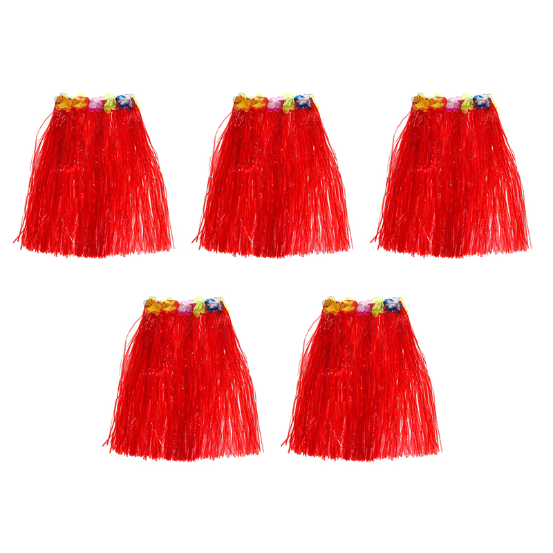 Гавайская юбка длинная 60 см, цвет красный (Набор 5 шт.)