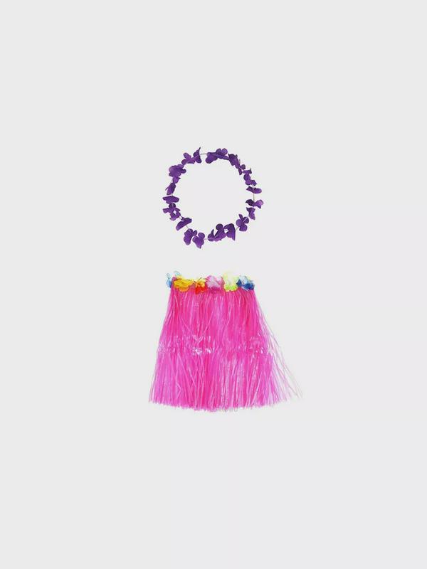 Гавайская юбка 60 см, цвет розовый, гавайское ожерелье "Цветочки", цвет фиолетовый
