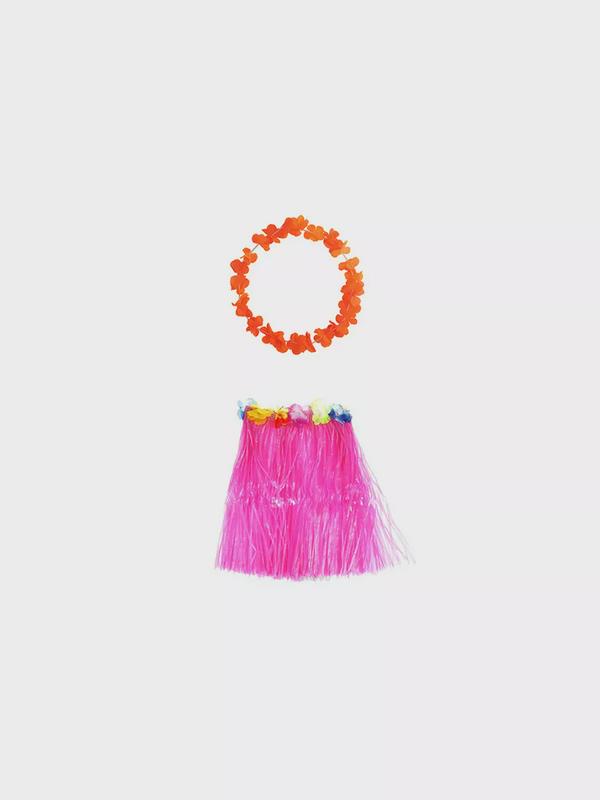Гавайская юбка 60 см, цвет розовый, гавайское ожерелье "Цветочки", цвет оранжевый
