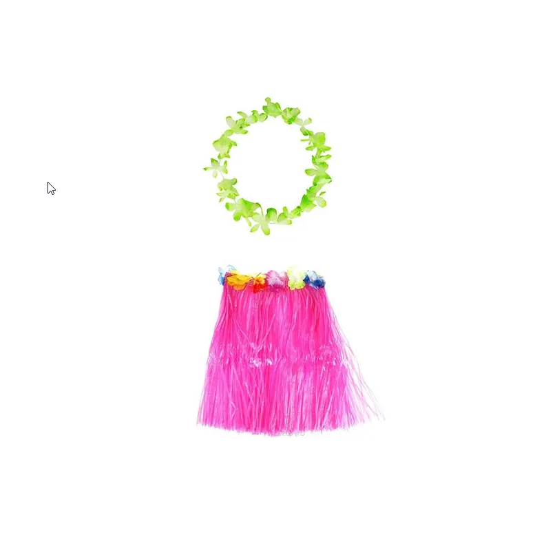 Гавайская юбка 60 см, цвет розовый, гавайское ожерелье "Двухцветные цветы", цвет светло-зеленый, салатовый