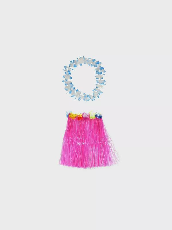 Гавайская юбка 60 см, цвет розовый, ожерелье гавайское "Двухцветное", цвет бело-синий-голубой