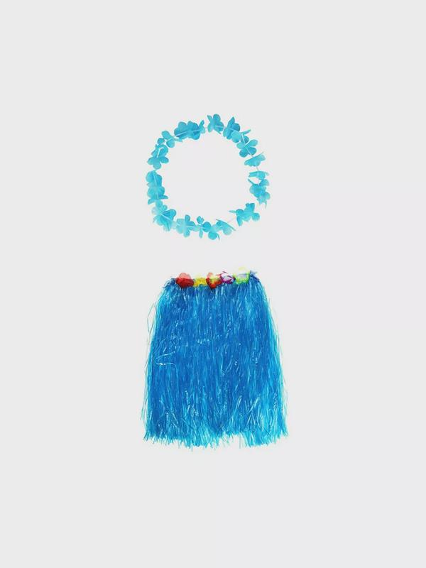Гавайская юбка 60 см, цвет синий голубой, гавайское ожерелье "Цветочки", цвет голубой