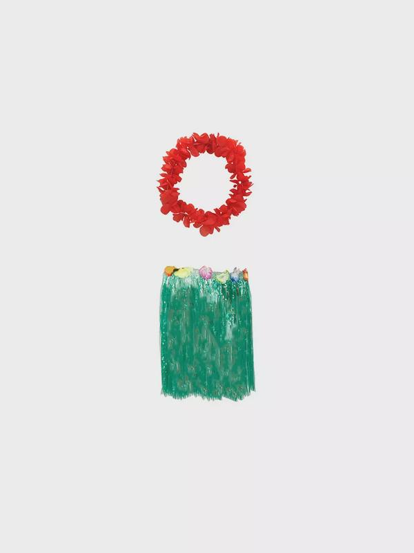 Гавайская юбка 60 см, цвет зеленый, гавайское ожерелье "Пышное", цвет красный
