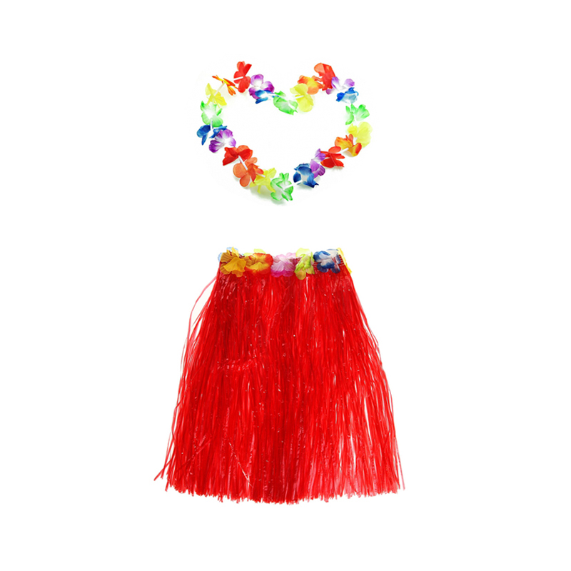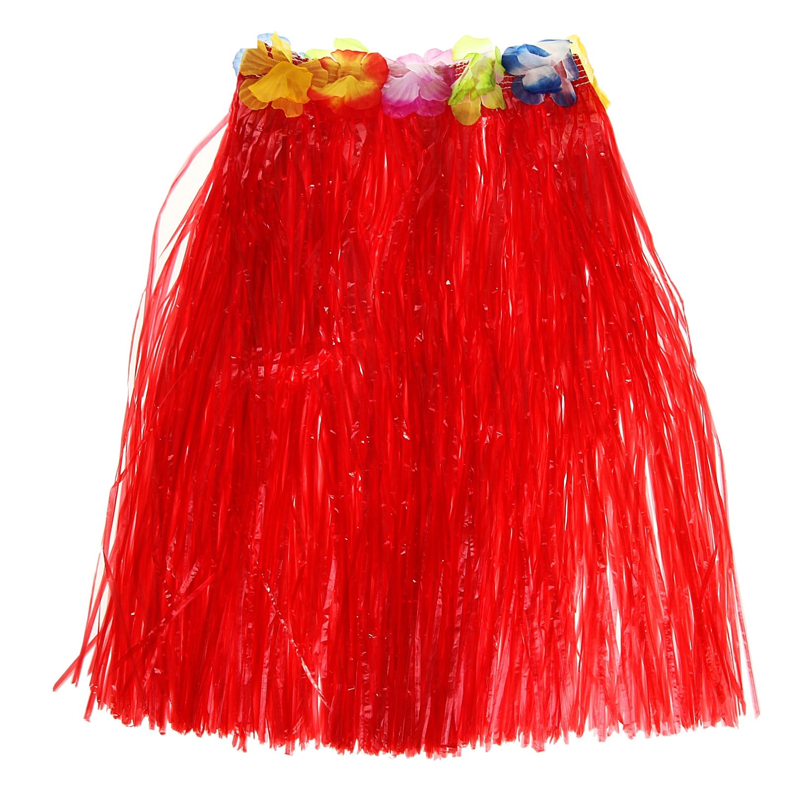 Гавайская юбка 60 см, красная, гавайское ожерелье 96 см
