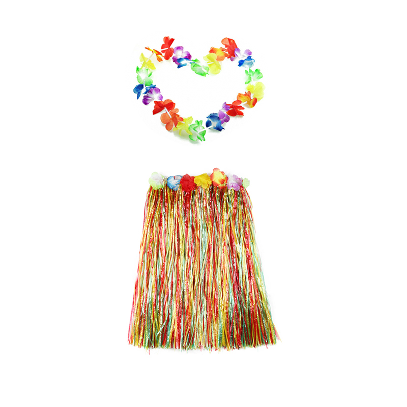 Гавайская юбка 60 см, разноцветная с цветочками, гавайское ожерелье 96 см