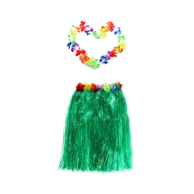 Гавайская юбка 60 см, зеленая, гавайское ожерелье 96 см