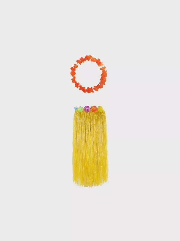 Гавайская юбка длинная желтая с цветочками, 80 см, гавайское ожерелье "Цветочки", цвет оранжевый