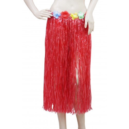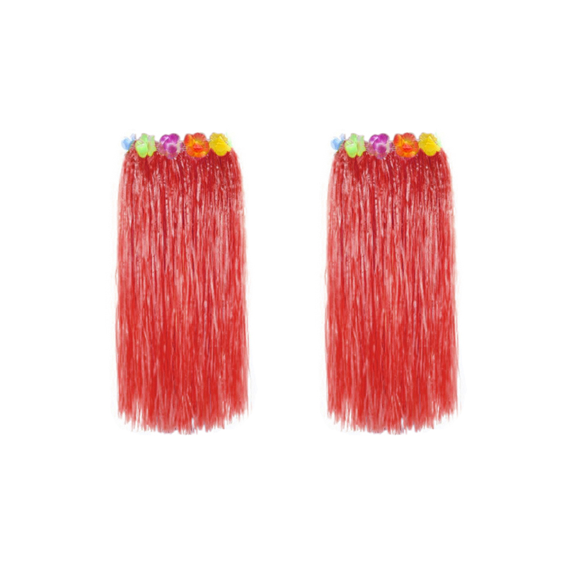 Гавайская юбка длинная красная с цветочками, 80 см (Набор 2 шт.)