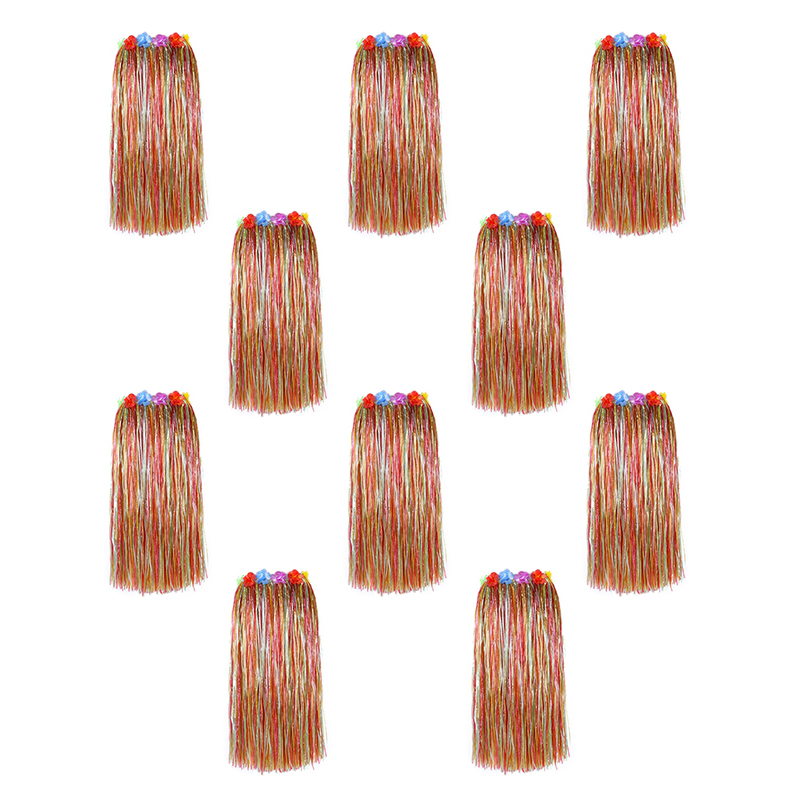 Гавайская юбка длинная разноцветная с цветочками, 80 см (Набор 10 шт.)