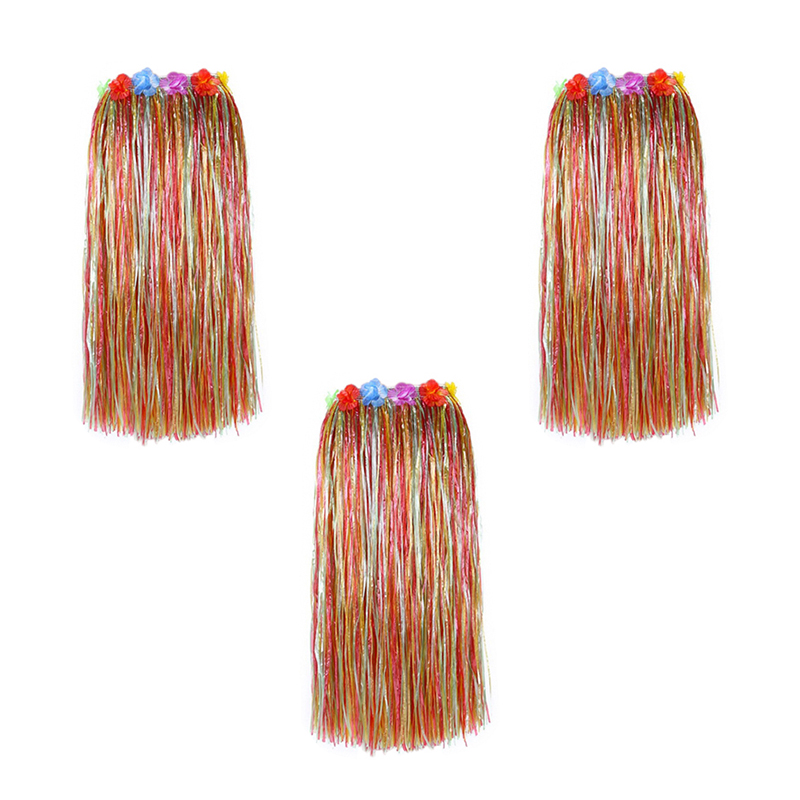 Гавайская юбка длинная разноцветная с цветочками, 80 см (Набор 3 шт.)