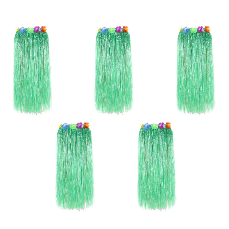 Гавайская юбка длинная зеленая с цветочками, 80 см (Набор 5 шт.)
