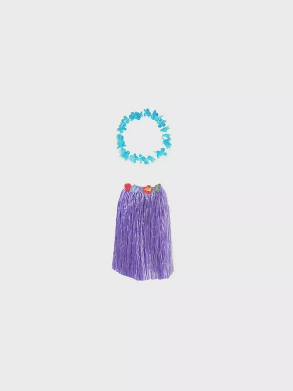Гавайская юбка фиолетовая, 60 см, гавайское ожерелье "Цветочки", цвет голубой