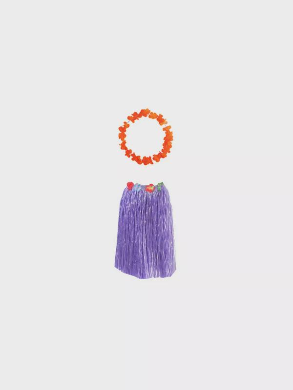 Гавайская юбка фиолетовая, 60 см, гавайское ожерелье "Цветочки", цвет оранжевый