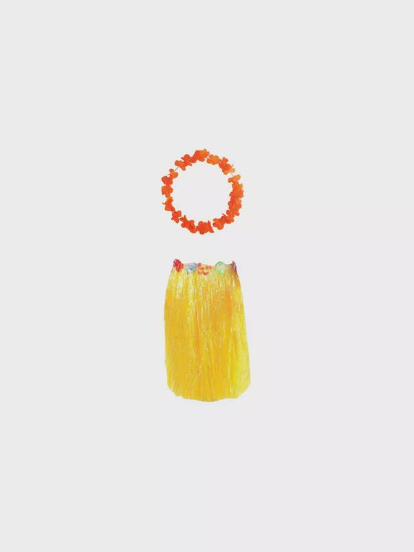 Гавайская юбка желтая, 60 см, гавайское ожерелье "Цветочки", цвет оранжевый