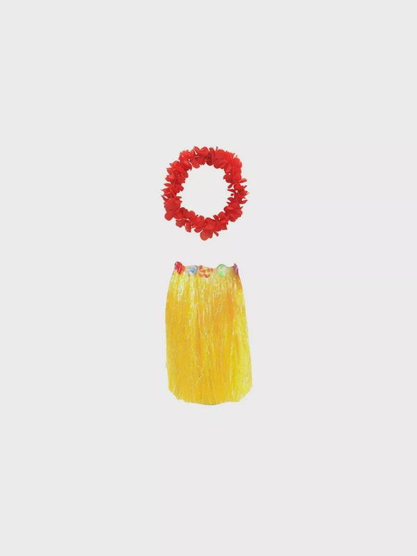 Гавайская юбка желтая, 60 см, гавайское ожерелье "Пышное", цвет красный