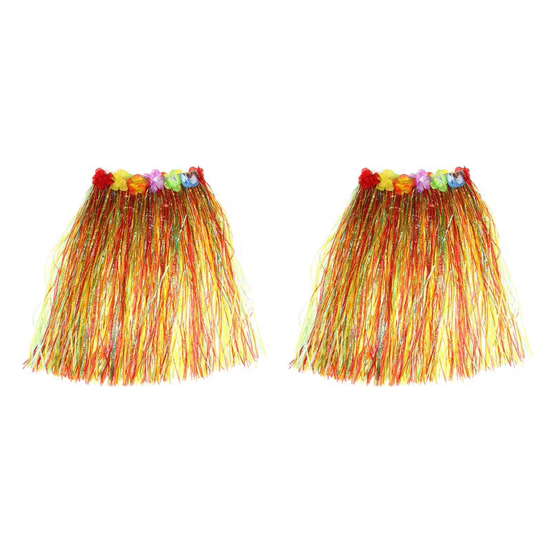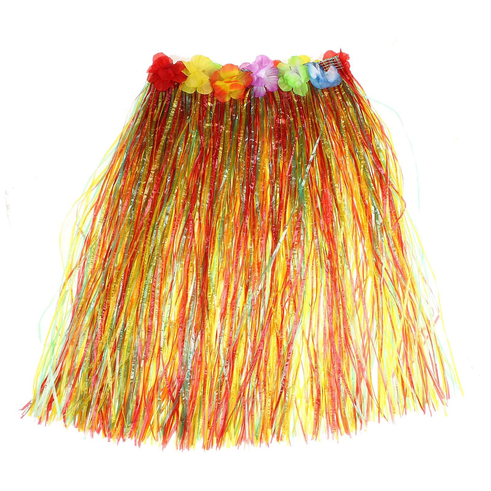 Гавайская юбка разноцветная с цветочками, 40 см (Набор 2 шт.)