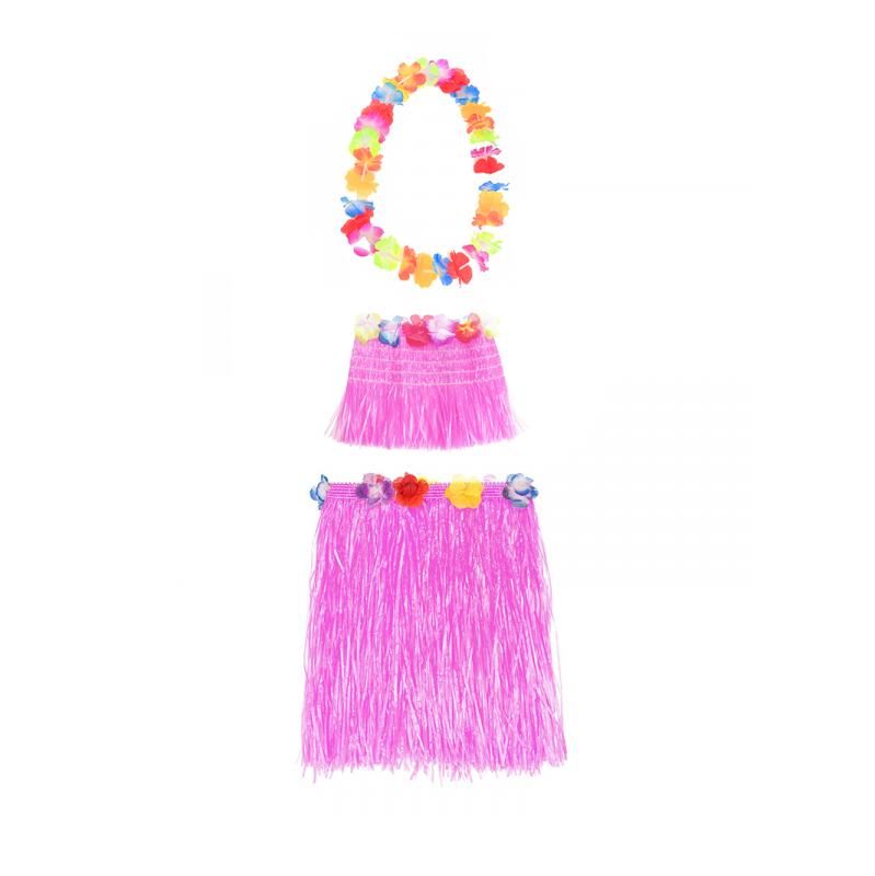 Гавайская юбка розовая 40 см, топ, ожерелье лея 96 см