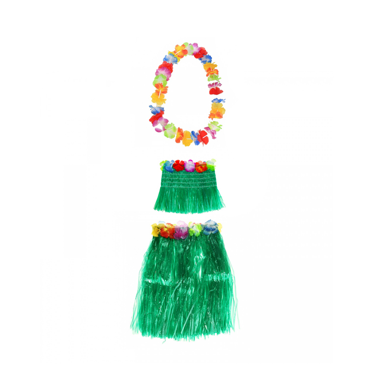 Гавайская юбка зеленая 40 см, топ, ожерелье лея 96 см