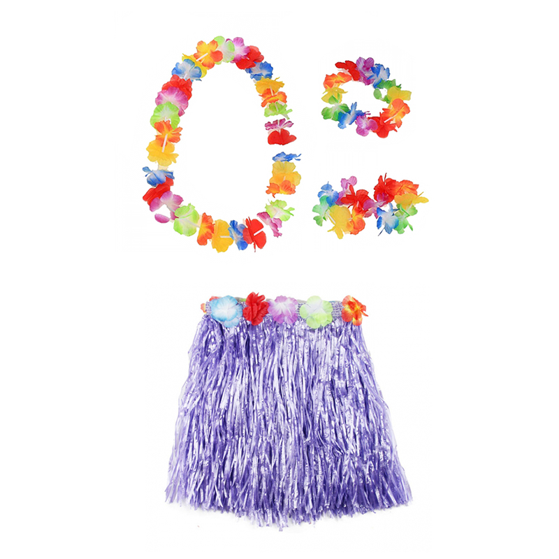Гавайская юбка фиолетовая 40 см, ожерелье лея 96 см, венок, 2 браслета (набор)