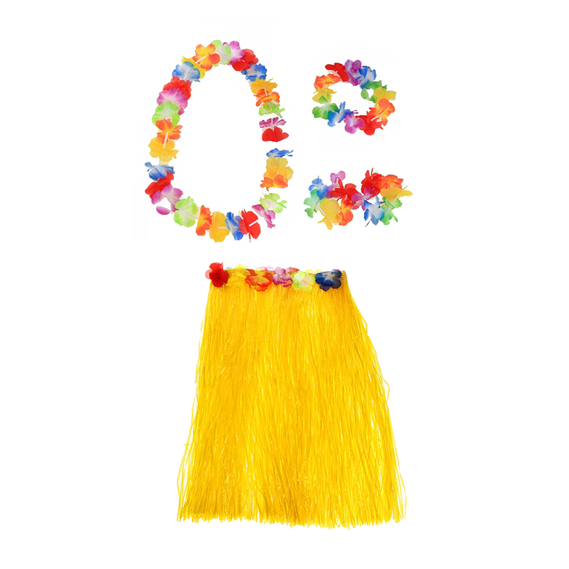 Гавайская юбка желтая 60 см, ожерелье лея 96 см, венок, 2 браслета (набор)