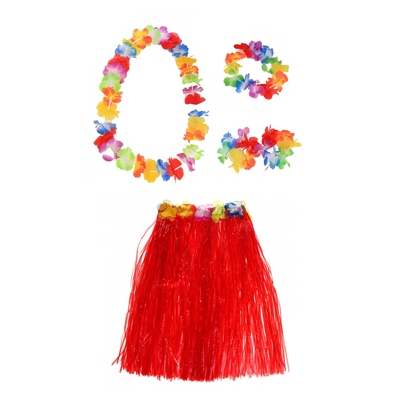 Гавайская юбка красная 60 см, ожерелье лея 96 см, венок, 2 браслета (набор)