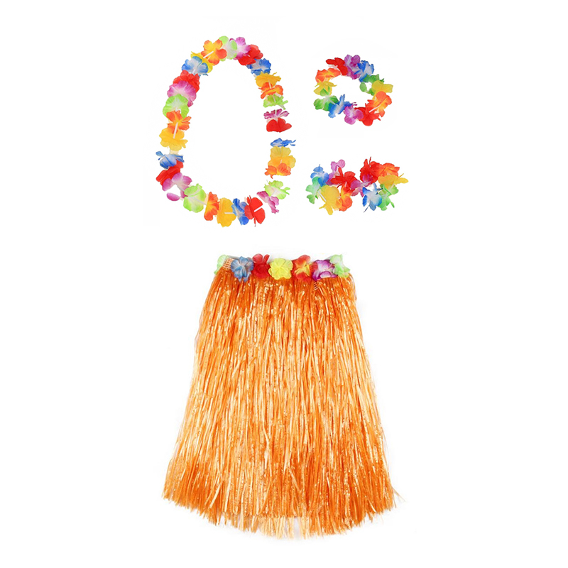Гавайская юбка оранжевая 60 см, ожерелье лея 96 см, венок, 2 браслета (набор)