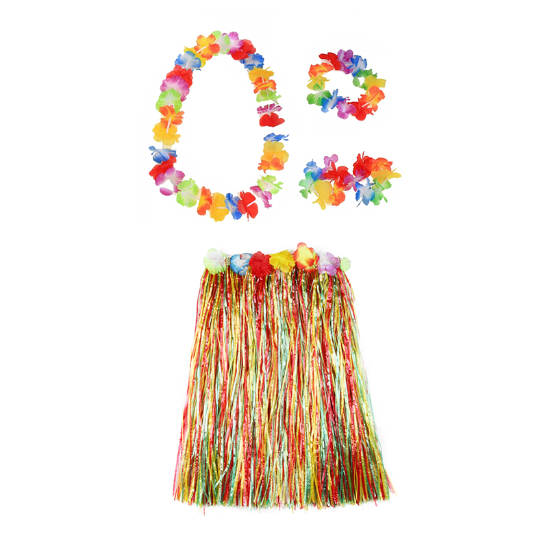 Гавайская юбка разноцветная 60 см, ожерелье лея 96 см, венок, 2 браслета (набор)