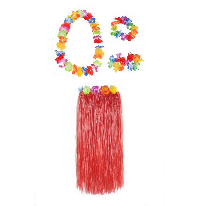 Гавайская юбка красная 80 см, ожерелье лея 96 см, венок, 2 браслета (набор)