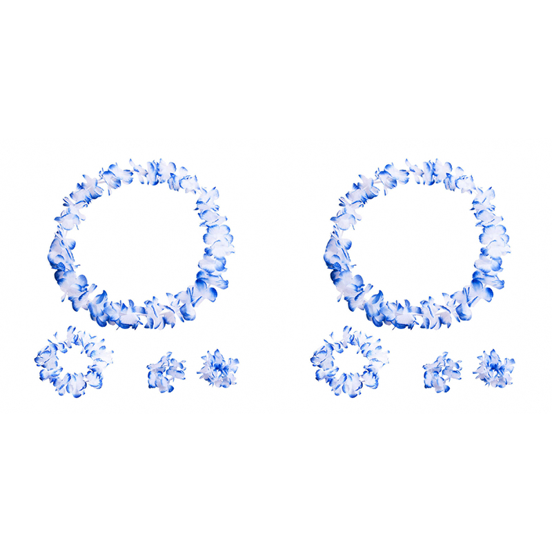 Гавайский набор, цвет синий, 4 предмета: ожерелье лея, венок, 2 браслета (Набор 2 шт.)