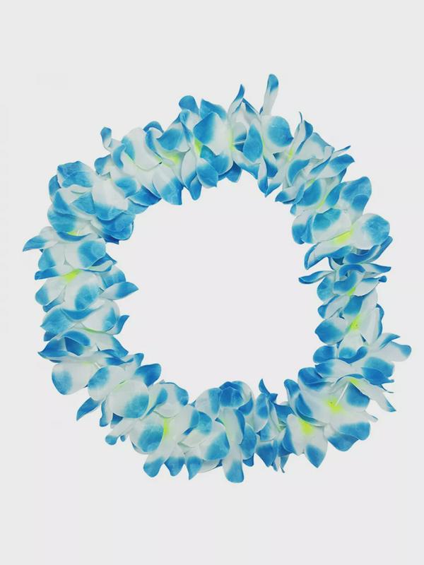 Гавайское ожерелье "Пышное", цвет голубой с желтым