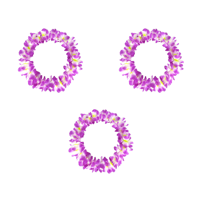 Гавайское ожерелье "Пышное", цвет желто-бело-фиолетовый (Набор 3 шт.)