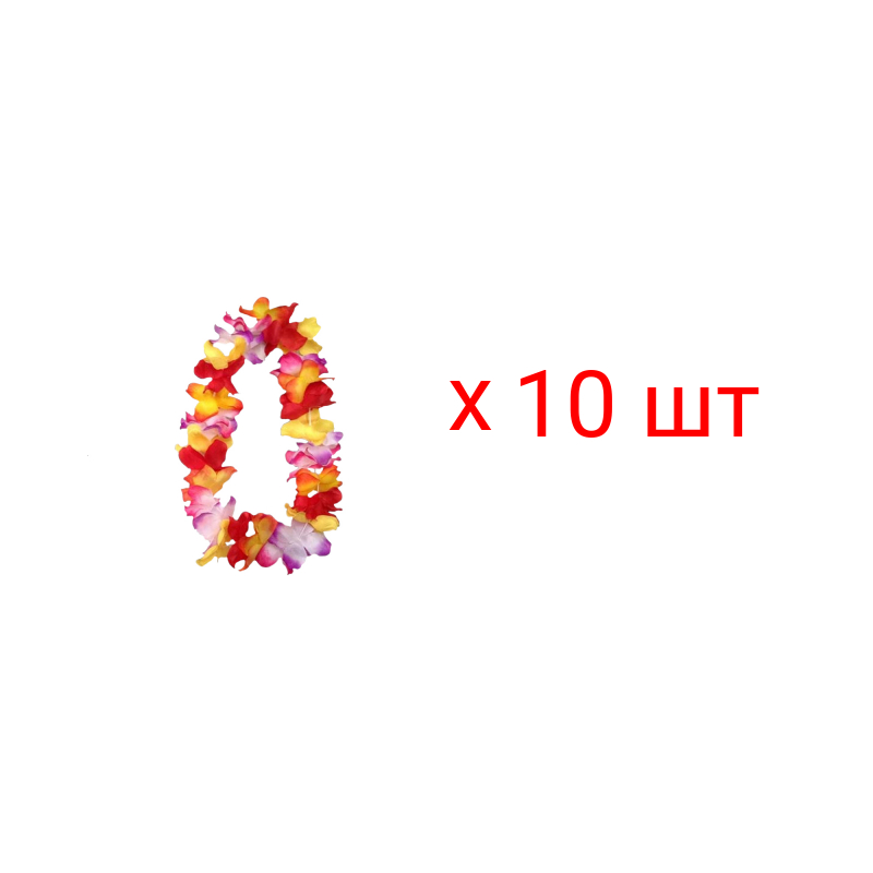 Гавайское ожерелье "Пышное", цвет желтый, оранжевый, красный, розовый, сиреневый (Набор 10 шт.)