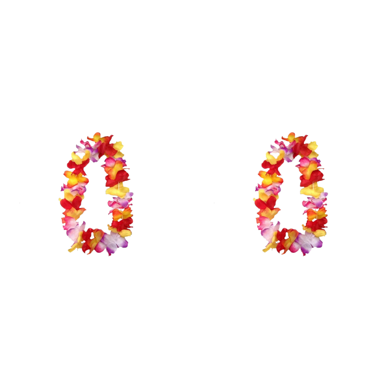 Гавайское ожерелье "Пышное", цвет желтый, оранжевый, красный, розовый, сиреневый (Набор 2 шт.)
