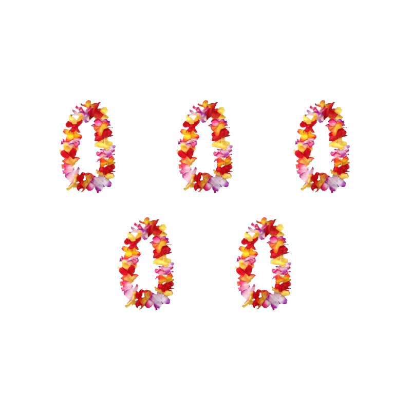 Гавайское ожерелье "Пышное", цвет желтый, оранжевый, красный, розовый, сиреневый (Набор 5 шт.)