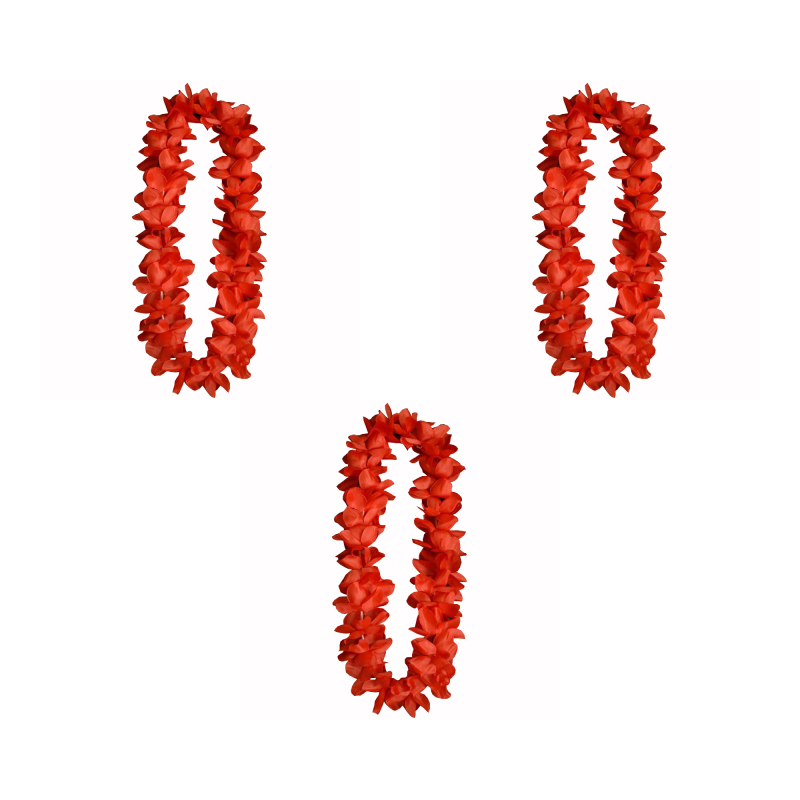 Гавайское ожерелье "Пышное", цвет красный (Набор 3 шт.)